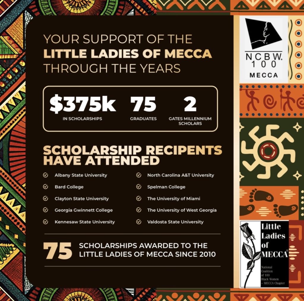 The National Coalition of 100 Black Women, Incorporated—MECCA Chapter (NCBW-MECCA) is a 501(c)(3) non-profit advocacy organization dedicated to empowering minority women and girls in the areas of education, health, economic empowerment, and public advocacy, thereby, allowing them to become a positive and impactful force in their communities for current and future generations.